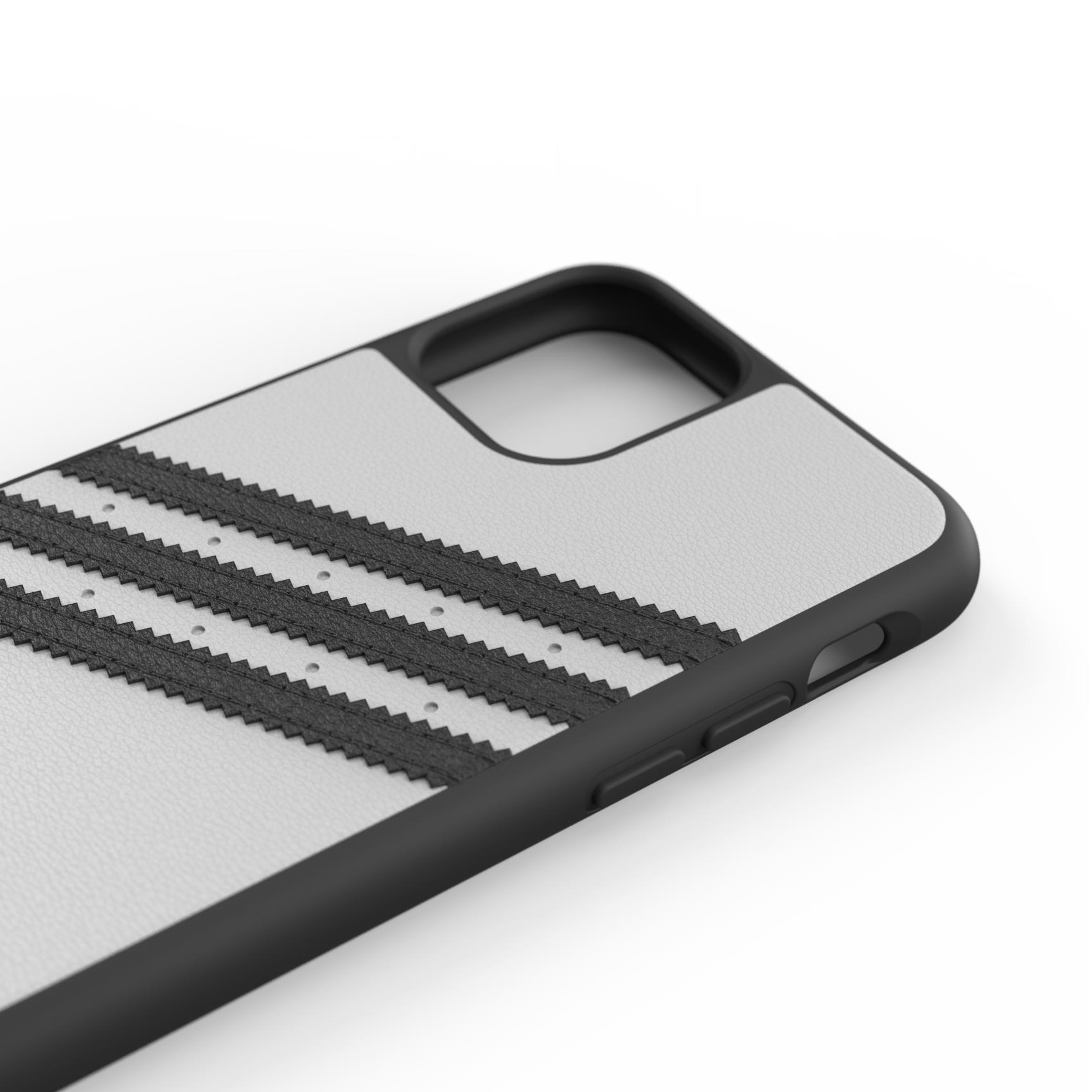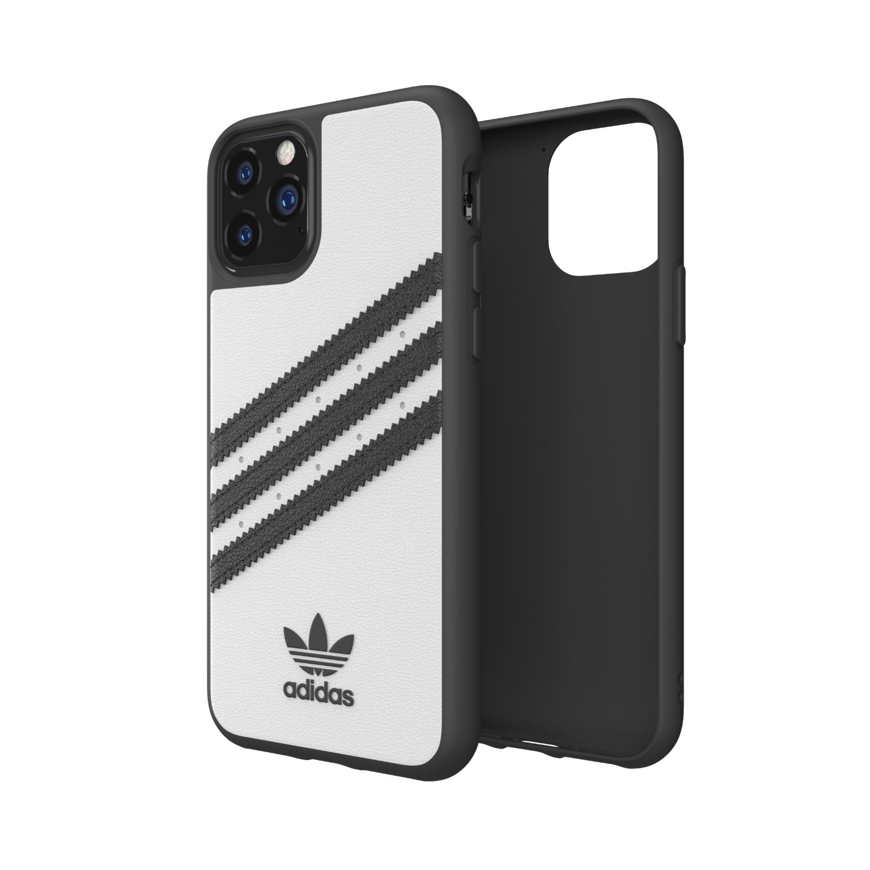 ADIDAS ORIGINALS - Cover SAMBA in TPU+Poliuretano con bordi rialzati di colore bianco con strisce nero compatibile con Apple iPhone 11 Pro Max