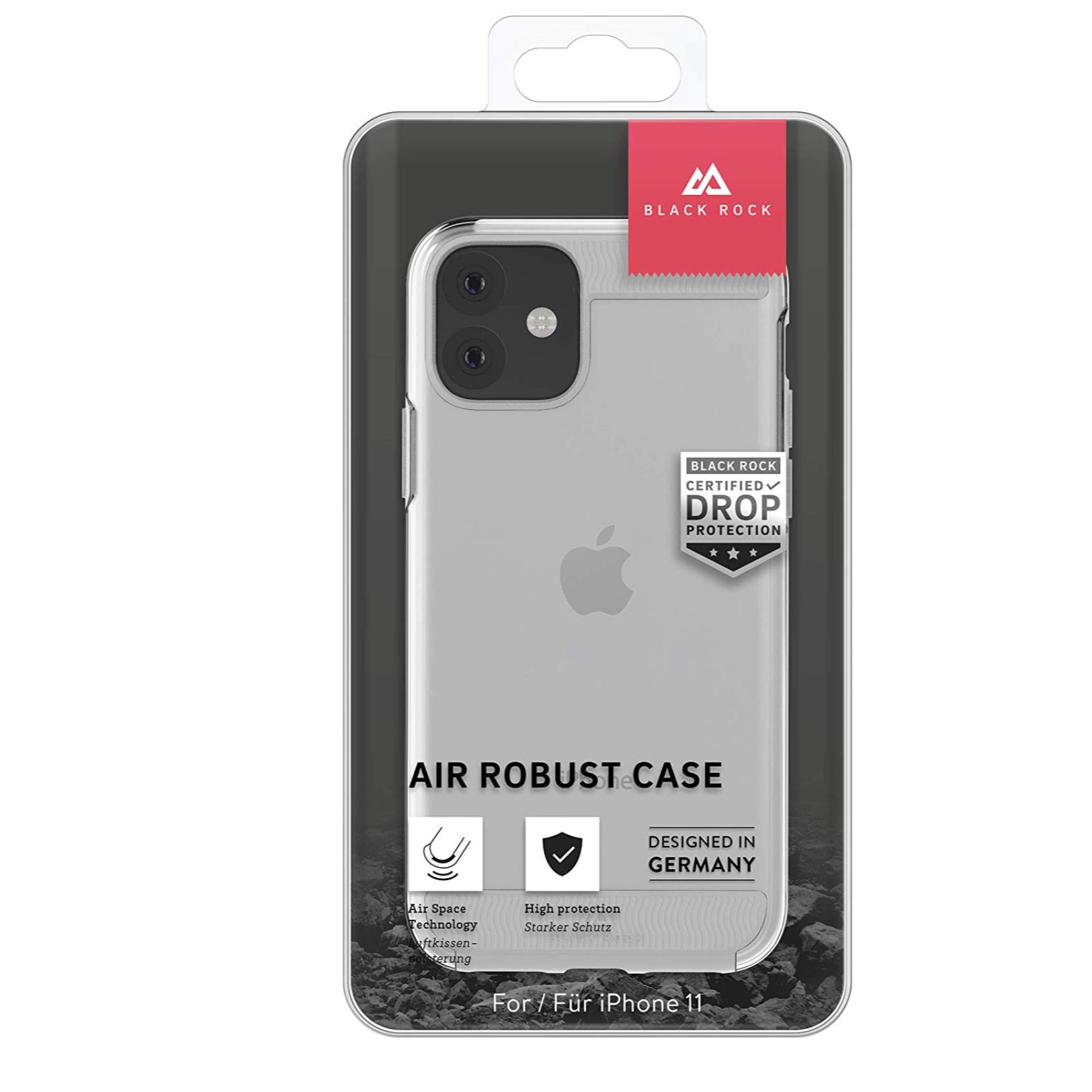 BLACK ROCK AIR ROBUST - Cover Ultra protettiva in TPU trasparente e finiture colore trasparente opache bordi rialzati compatibile con Apple iPhone 11