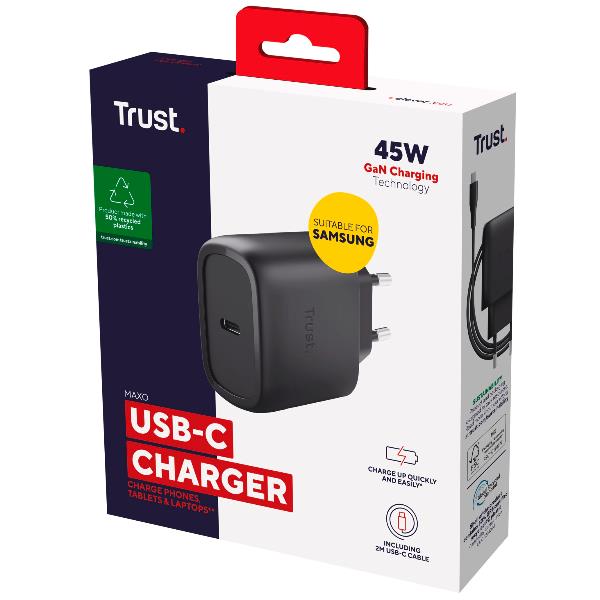 ALIMENTATORE 45W USB-C PER SMASUNG - PLASTICA RICICLATA 50% - TRUST MAXO F/SAMSUNG NERO