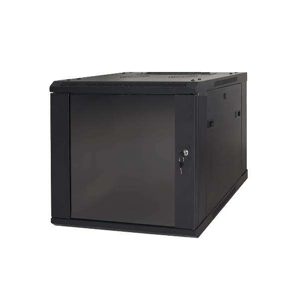 ARMADIO RACK 19" 6 UNITA' DA MURO (A) 370 x (L) 600 x (P) 450 NERO DISASSEMBLATO PORTA VETRO
