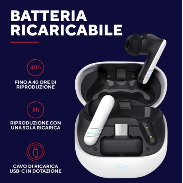 AURICOLARI GAMING WIRELESS RICARICABILE CON DOPPIA CONNESSIONE BT + 2,4GHz (DONGLE USB-C) - TRUST GXT409 OXXIE - BIANCO/NERO