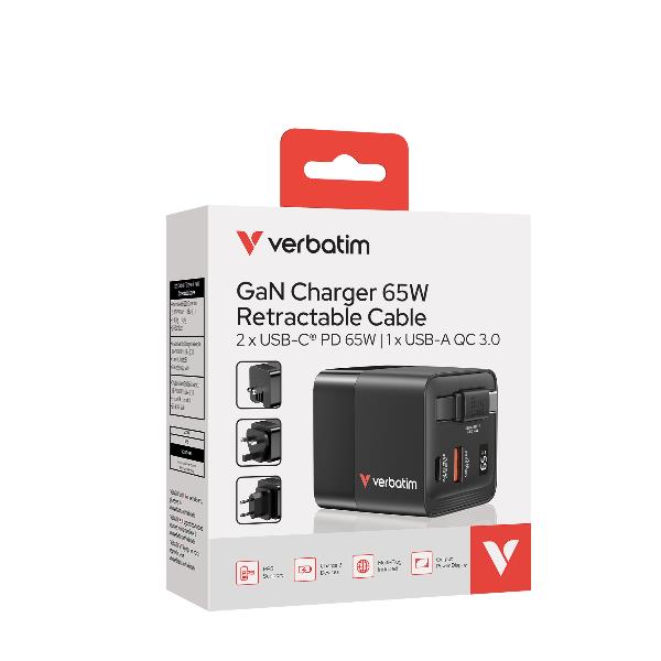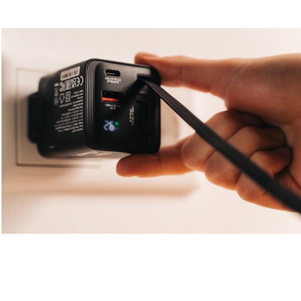 Caricatore GAN 65W 2 porte con cavo usb C incorporato