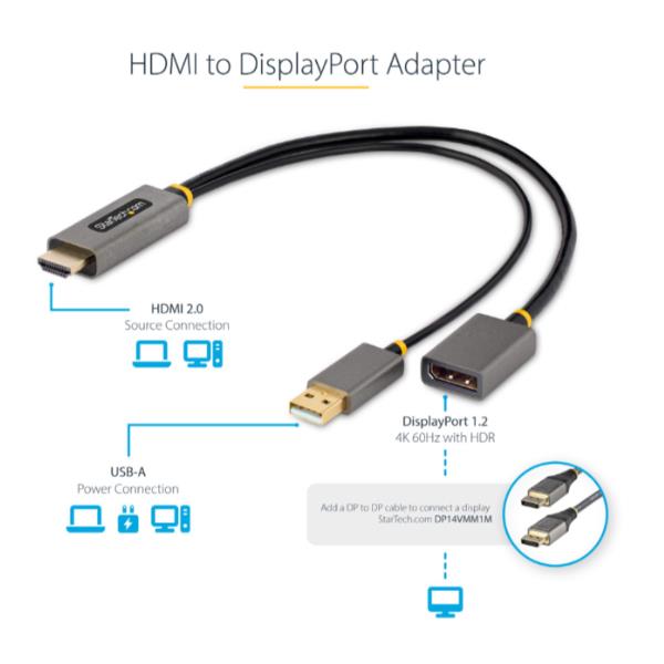 Cavo adattatore da HDMI a DisplayPort da 30 cm - Convertitore attivo da HDMI 2.0 a DP 1.2