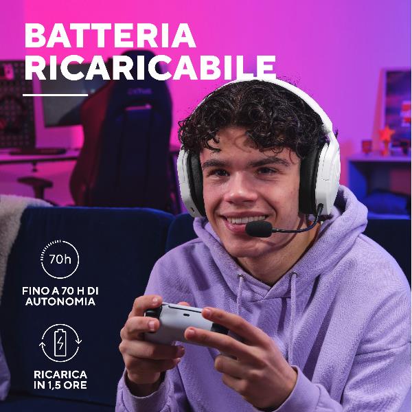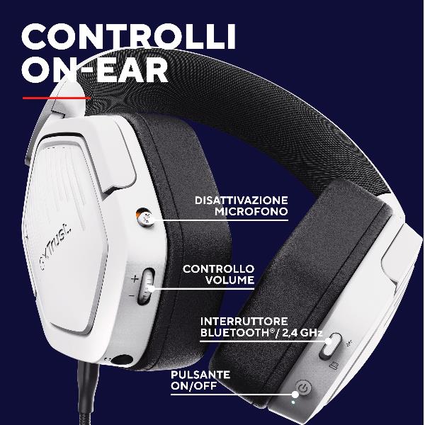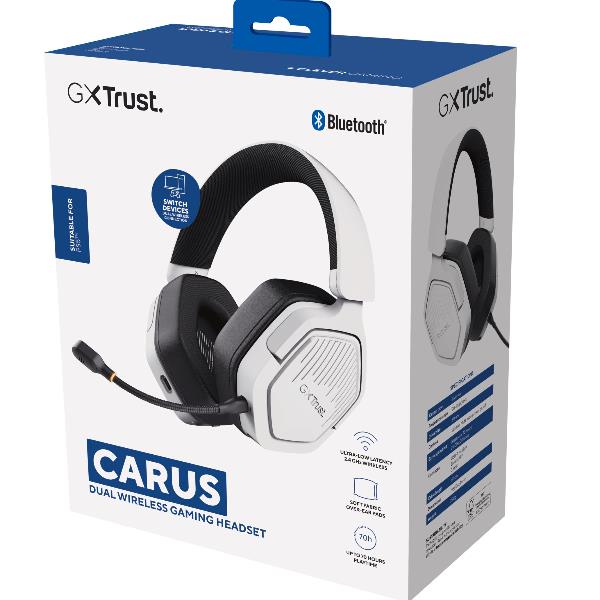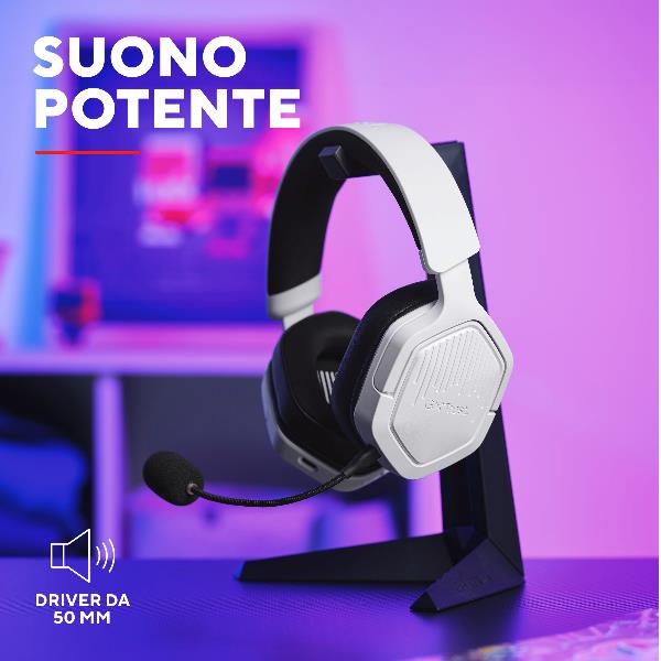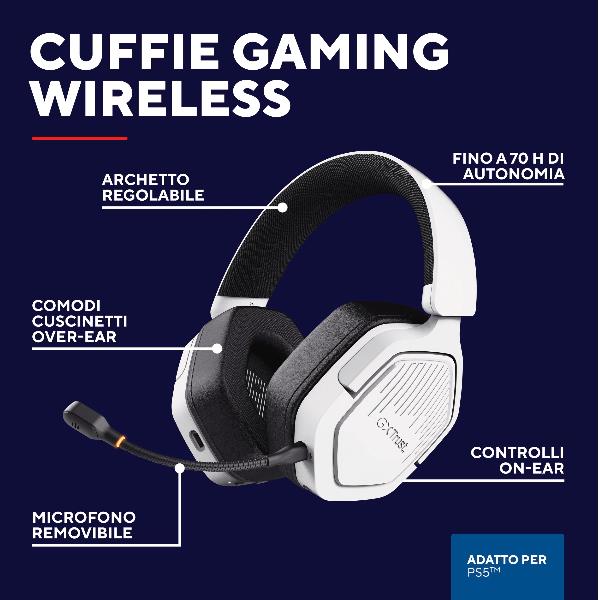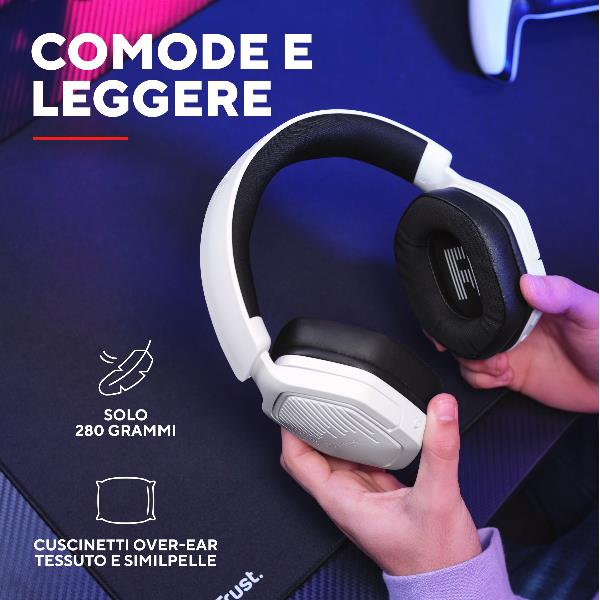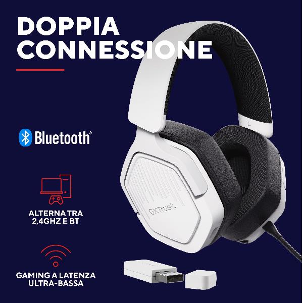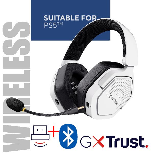 CUFFIA GAMING WIRELESS RICARICABILE PLAYSTATION® COMPATIBILE, CON DOPPIA CONNESSIONE BT + 2,4GHz OVER-EAR, DRIVER 50MM - TRUST GXT 493PS CARUS - BIANCO