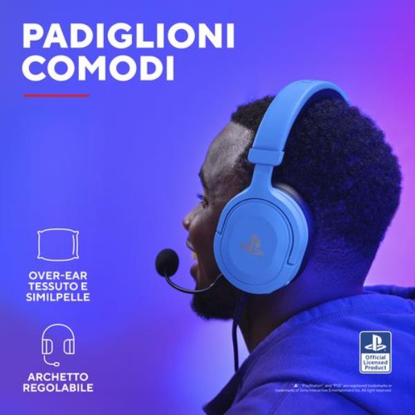 CUFFIE GAMING CABLATE JACK 3,5MM PLAYSTATION® PS5™ CERTIFICATE, DRIVER 50MM - PLASTICA RICICLATA 50% - TRUST GXT498B FORTA - BLU