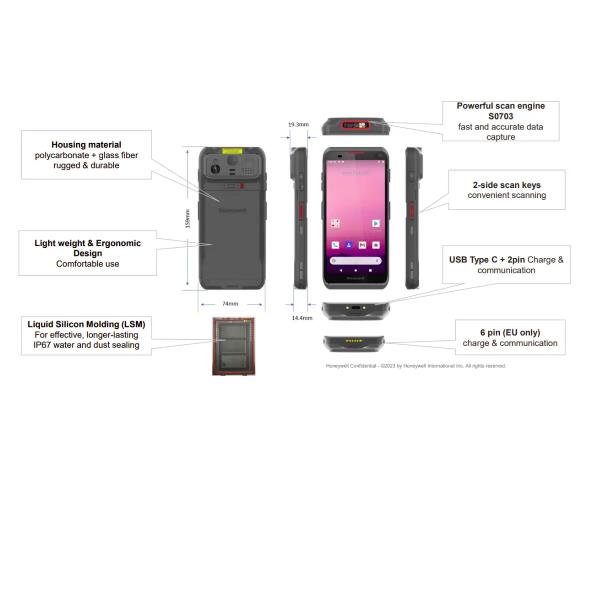 EDA57: 5G&WIFI5, w/o fingerprint and eSIM , 5.5’ Screen, Full Touchscreen, 4GB/64GB, Front&Rear Camera, Extended Battery, GMS, IP67, Standard, S0703/S0703VE, Kitting Suzhou Plant,
