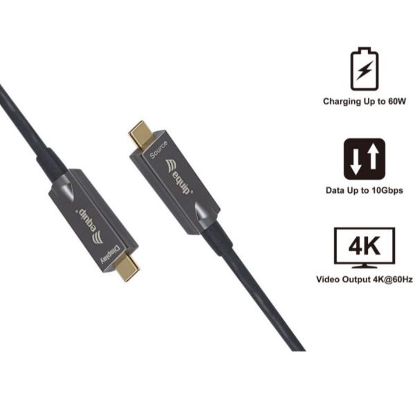 EQUIP - Cavo ottico attivo USB-C a C, PD 60W, 4K/60Hz, 10Gbps, Video+Dati+PD - 7.5m 1