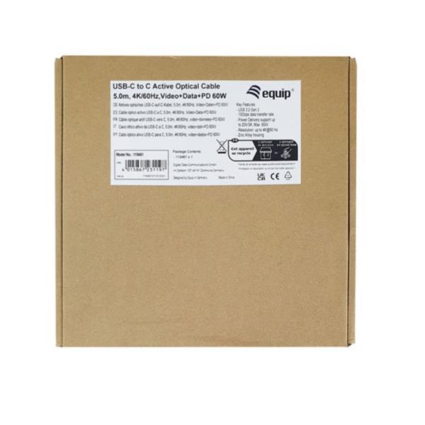 EQUIP EQUIP - Cavo ottico attivo USB-C a C, PD 60W, 4K/60Hz, 10Gbps, Video+Dati+PD - 7.5m