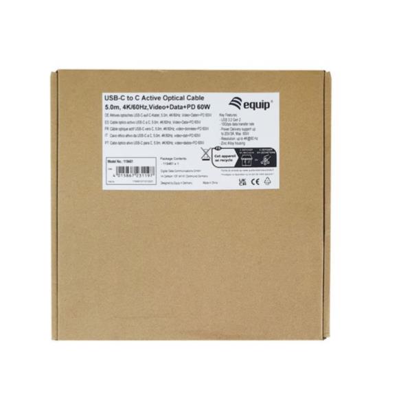 EQUIP - Cavo Ottico Attivo USB-C a C, PD 60W, 8K/60Hz, 10Gbps, Video+Dati+PD - 15m