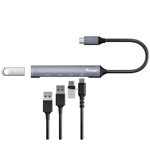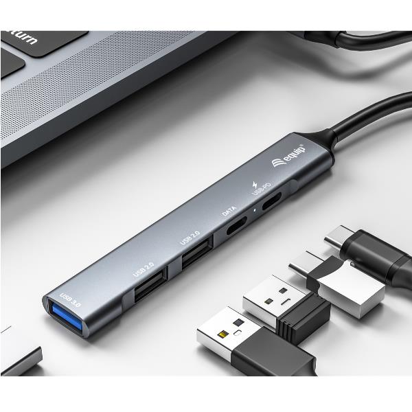EQUIP - HUB 5-PORTE USB-C (1x USB 3.0, 2x USB 2.0, 1x USB-C PD 100W, 1x USB-C), Alluminio