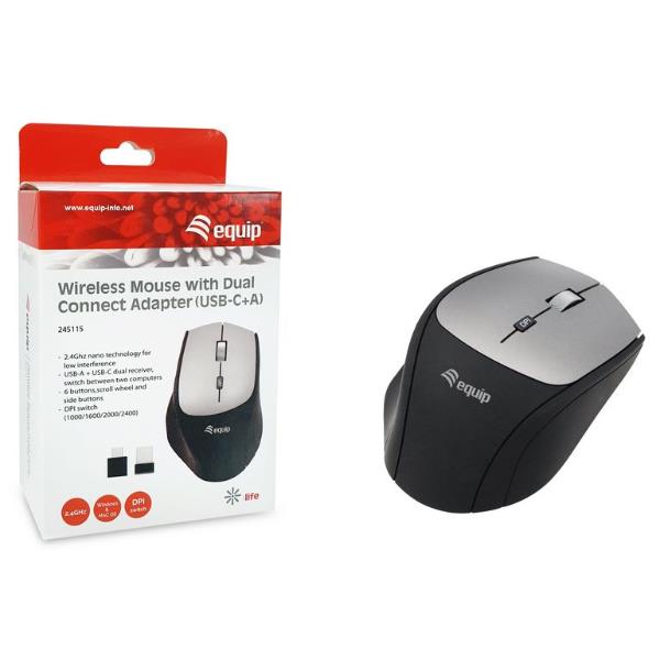 EQUIP - MOUSE ERGONOMICO WIRELESS 6-TASTI 2400dpi CON ADATTATORE DOPPIA CONNESSIONE (USB-C+A) 1