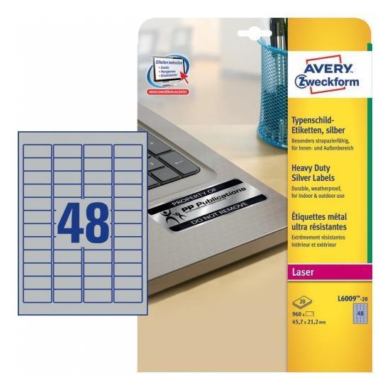CONSUMABILI AVERY Etichette in poliestere argento - per stampanti Laser bianco/nero - 45,7 x 21,2 mm