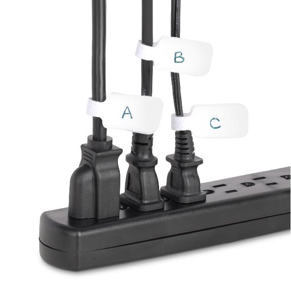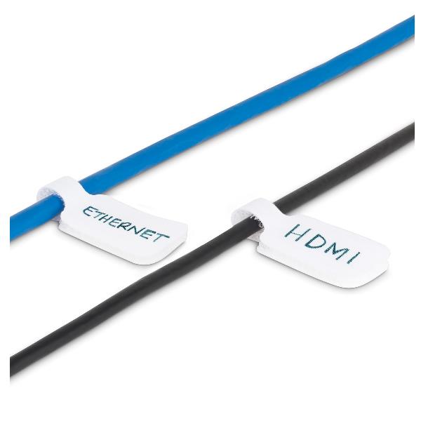 Etichette per cavi da 9cm, confezione da 100, bianco, Etichette per la gestione cavi con fissaggio a strappo, etichette segnacavi scrivibili
