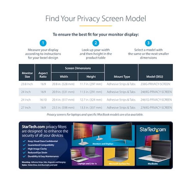 StarTech Filtro Privacy Oro per Monitor 24" 16:10, schermo privacy reversibile, Privacy Screen Protector per PC, protezione/schermo rimovibile, +/- 30 gradi