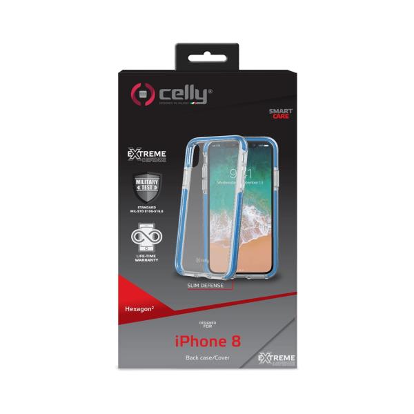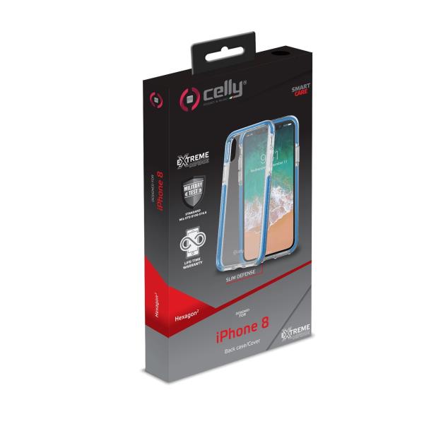 HEXAGON - Cover trasparente azzurro semi rigida, ultra resistente in TPU + Policarbonato compatibile con Apple iPhone Xs/ iPhone X