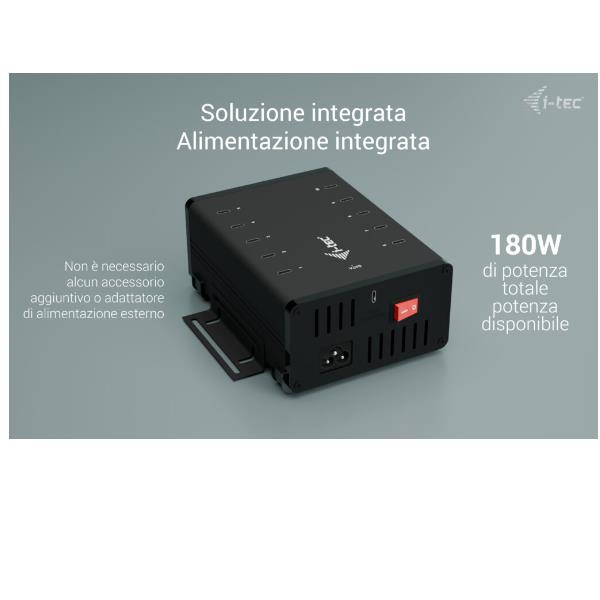 I-TEC HUB Universale  USB-C / USB-A a 10 porte USB-C + Ricarica 15W per porta - con Alimentatore