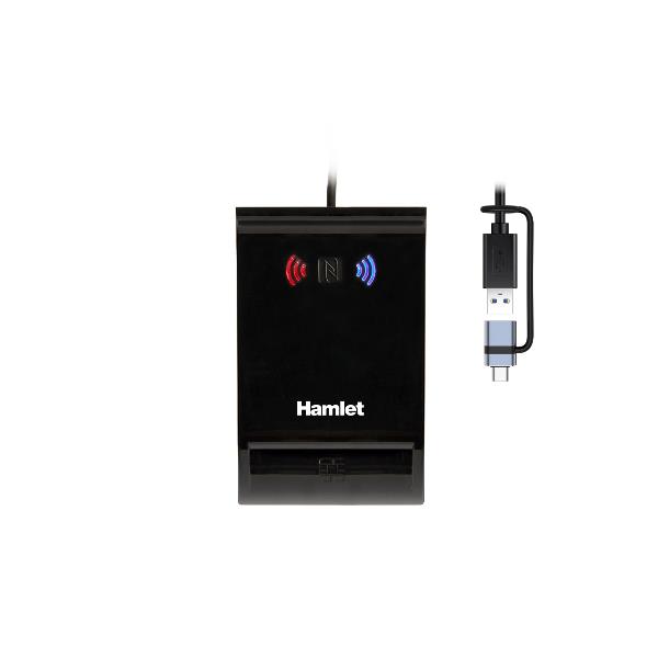 HAMLET HUSCR-NFCX  Lettore USB-A + USB-C di Smart Card a Contatto e Wireless NFC Carta Identità CIE 3.0, CNS, TS