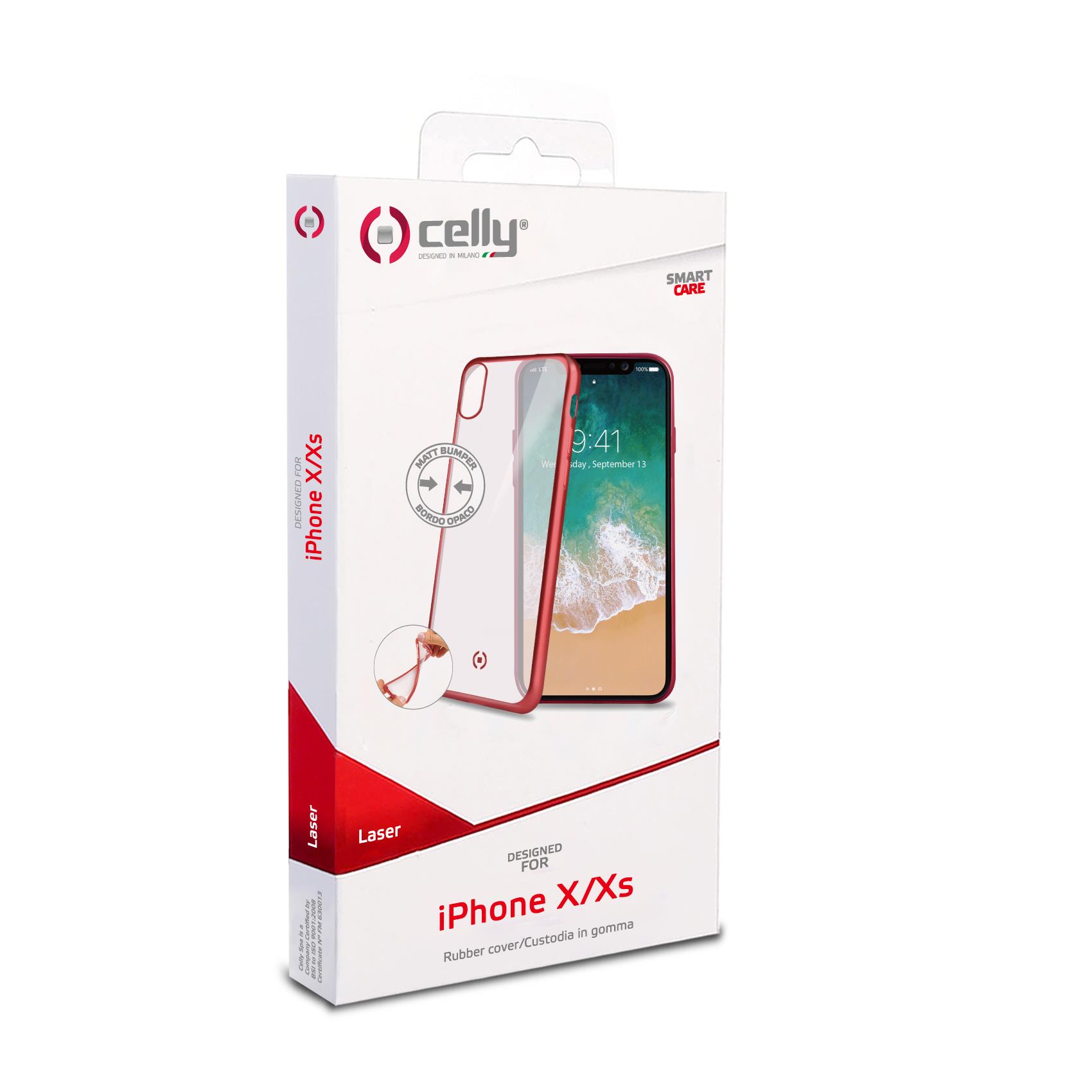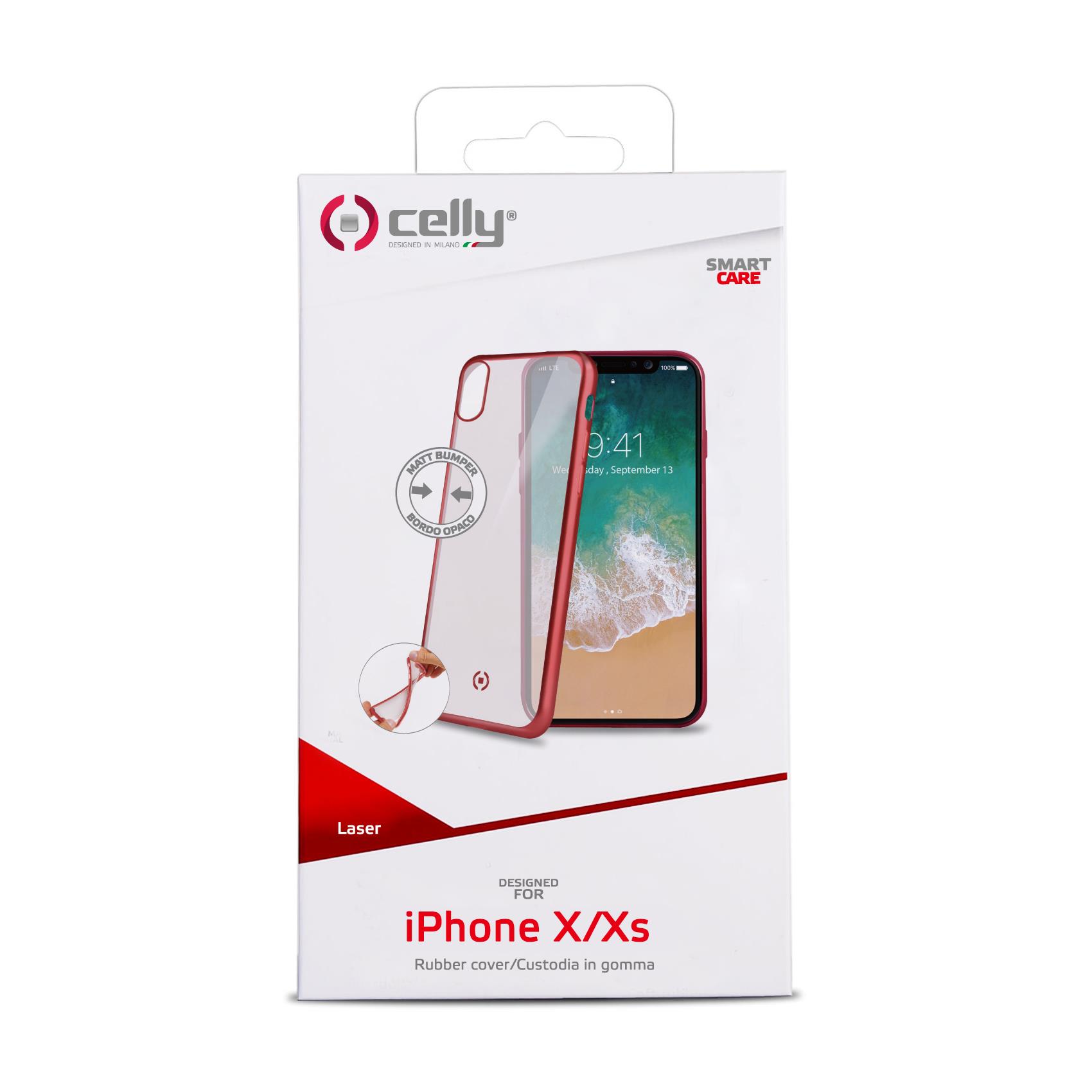 LASER MATT - Cover trasparente morbida con effetto metallo colore rosso compatibile con Apple iPhone Xs/ iPhone X