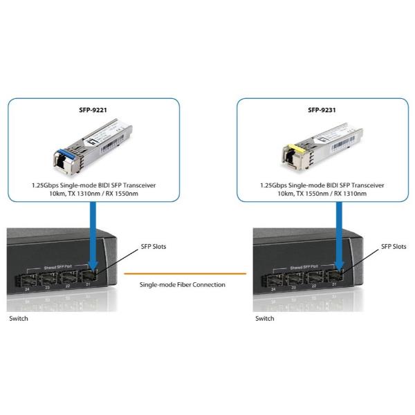 LEVELONE SFP-9231 - TRANSCEIVER 1.25Gbps Monomodale BIDI(WDM) SFP, 10km, TX 1550nm / RX 1310nm 6
