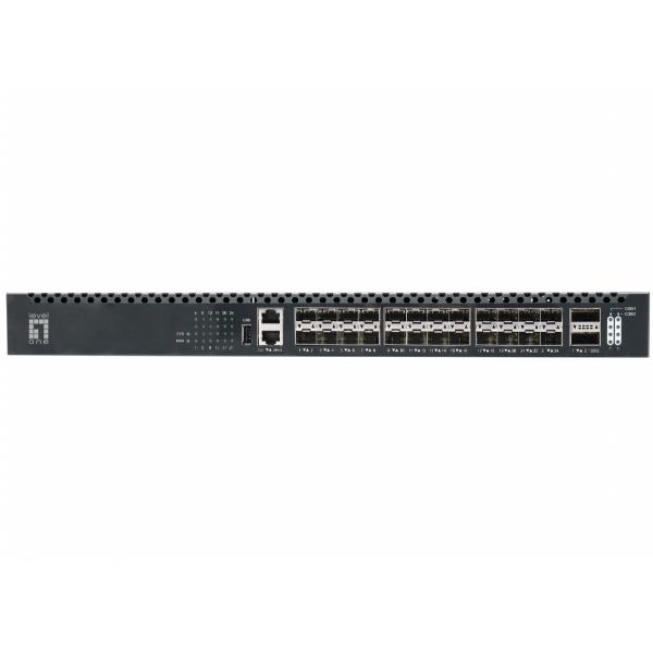 LEVELONE XQS-3126 - SWITCH 26-PORTE IN FIBRA TOR L3 MANAGED, 24x 1/10GbE SFP+, 2x 40/100GbE QSFP28, alimentatore ridondante hot-swap