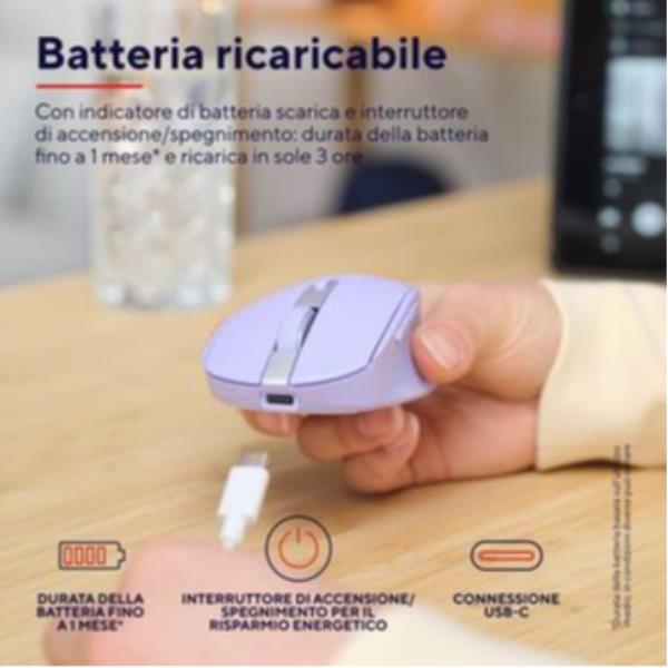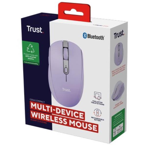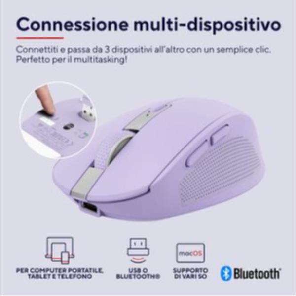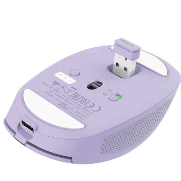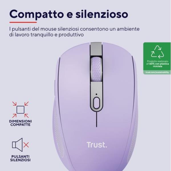 MOUSE WIRELESS RICARICABILE MULTICONNECT BT + WL 2,4GHZ SILENZIOSO - PLASTICA RICICLATA 60% - TRUST OZAA - VIOLA 5