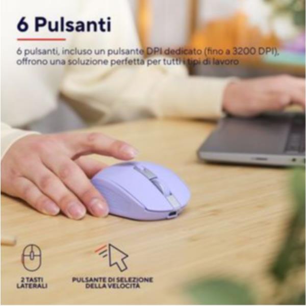 MOUSE WIRELESS RICARICABILE MULTICONNECT BT + WL 2,4GHZ SILENZIOSO - PLASTICA RICICLATA 60% - TRUST OZAA - VIOLA 6