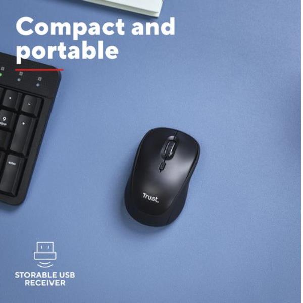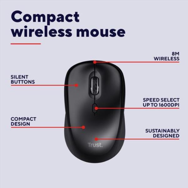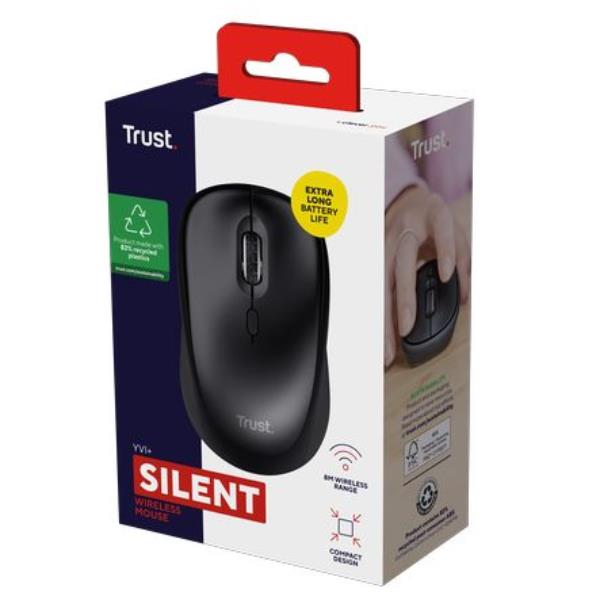 MOUSE WIRELESS SILENZIOSO - 1600DPI - PLASTICA RICICLATA 82% - DURATA BATTERIA 12 MESI - TRUST YVI+ - NERO GLOSS