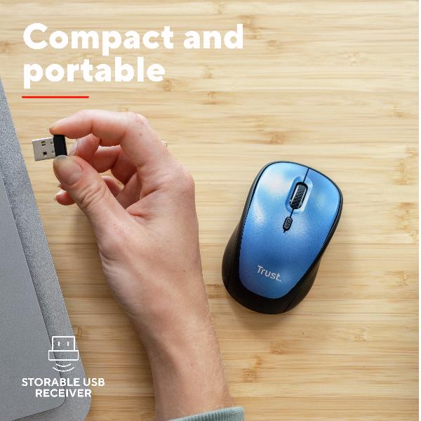 MOUSE WIRELESS SILENZIOSO - 1600DPI - PLASTICA RICICLATA 83% - DURATA BATTERIA 12 MESI - TRUST YVI+ BLU 8