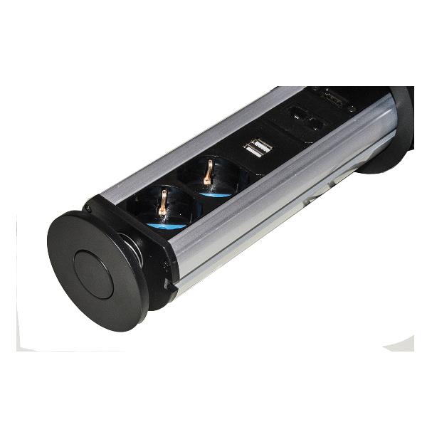 MULTIPRESA A SCOMPARSA CON 2 PORTE ALIMENTAZIONE ITA/SCHUKO 2 PORTE USB + 1 RJ45 + 1 RJ11 + 1 HDMI FEMMINA