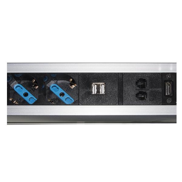 MULTIPRESA A SCOMPARSA CON 2 PORTE ALIMENTAZIONE ITA/SCHUKO, 2 PORTE USB + 1 RJ45 + 1 RJ11 + 1 HDMI FEMMINA
