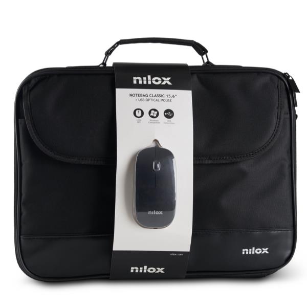 NILOX TECH - Borsa per Notebook/Laptop fino a 15.6", manico e tracolla, cerniera in metallo, interni rinforzati + Mouse ottico USB 1200 DPI, lunghezza cavo 1.2 mt, 3 tasti