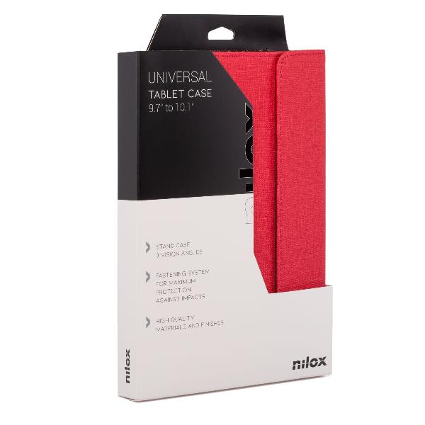 NILOX TECH - Custodia universale a libro per Tablet da 9.7" a 10.5" dimensione display, sistema di chiusura con lembo magnetico, 3 angoli di inclinazione