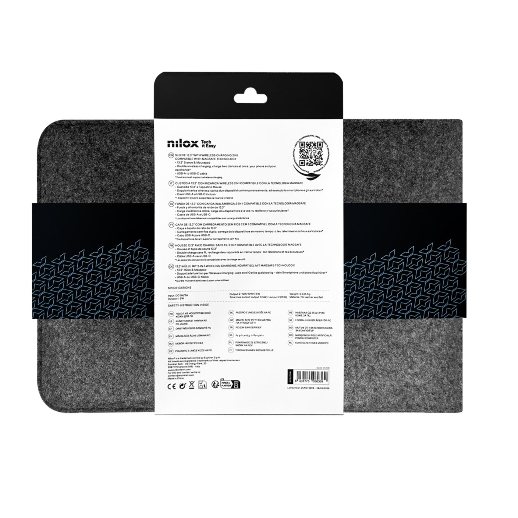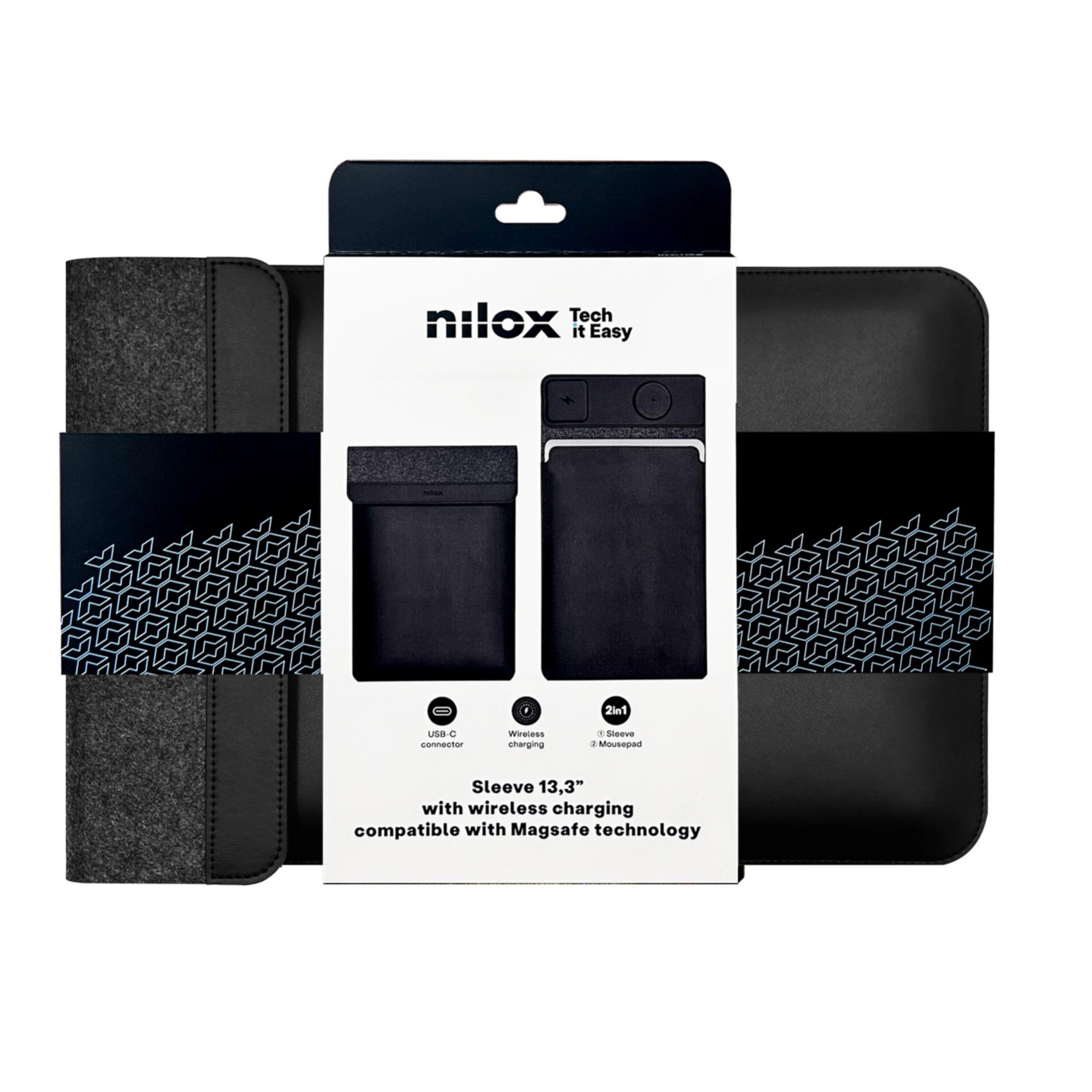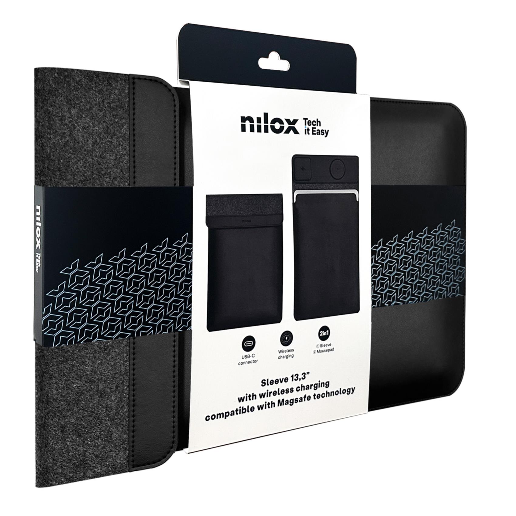 NILOX TECH - Custodia universale per Notebook/Laptop/Tablet fino a 13,3" con doppia ricarica wireless, ricarica 2 dispositivi, custodia che funge da tappetino mouse