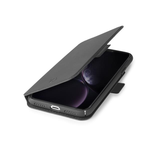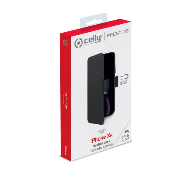 PRESTIGEM - Custodia ad agenda ultrasottile con finitura morbida con effetto opaco colore nero compatibile con Apple iPhone Xr