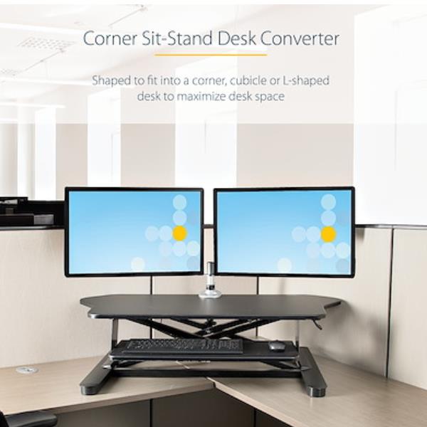 Scrivania ad angolo Sit Stand con Vassoio per Tastiera - Ampia Superficie (908x530mm)