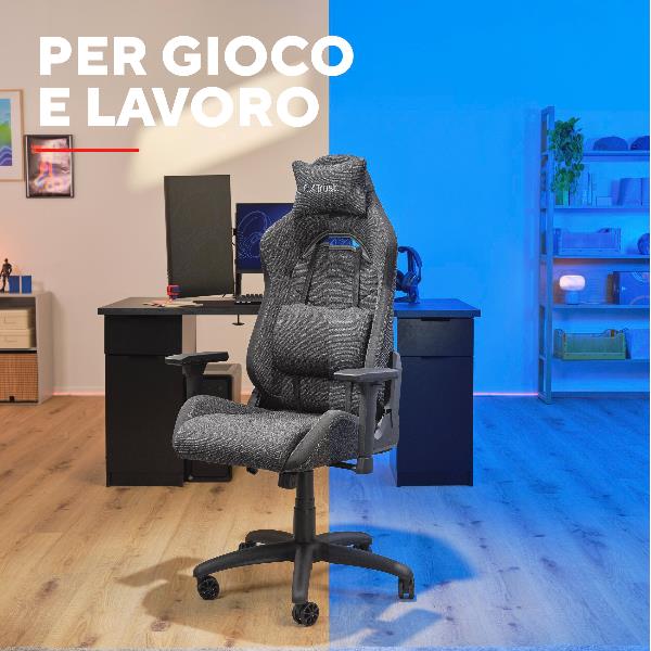 SEDIA GAMING PREMIUM IN TESSUTO REALIZZATA CON MATERIALI SOSTENIBILI - TRUST GXT 723 RUYA - GRIGIO