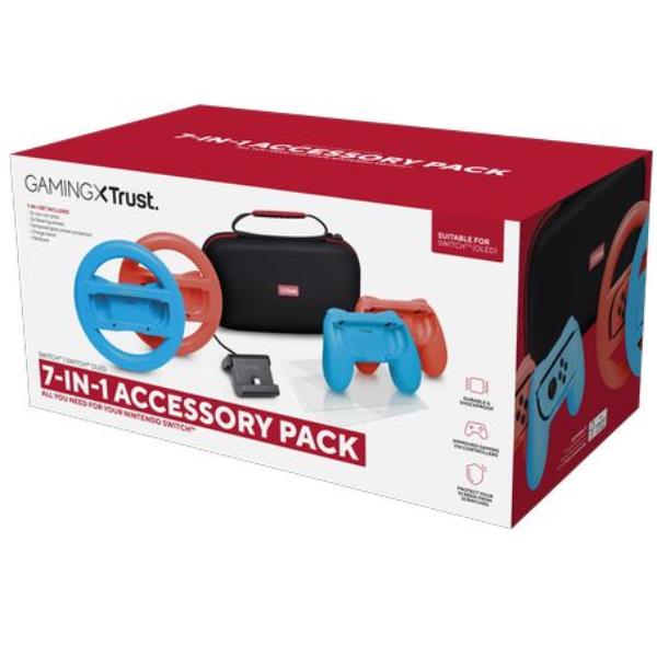 SET ACCESSORI 7 IN 1 PER NINTENDO SWITCH (CUSTODIA + 2 VOLANTI + 2 GAMEPAD PER JOYCON + 2 VETRO PROTEZIONE + SUPPORTO RICARICA) - TRUST GAMING GXT 1249 - MULTICOLORE