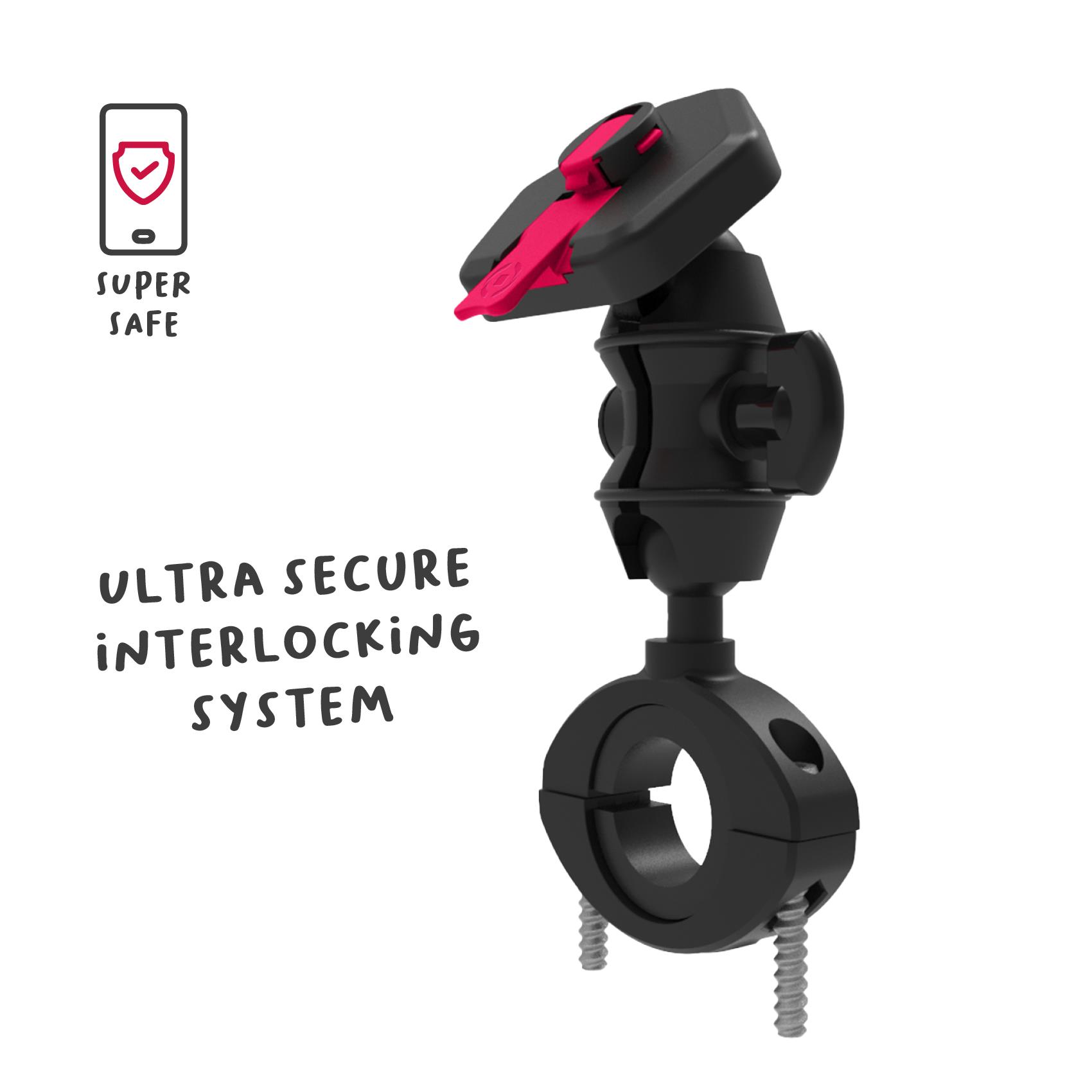SNAPMOTORBIKE – Supporto universale per smartphone, utilizzo motocicletta, fissaggio modulare ad incastro, utilizzo manubrio, testina regolabile 360°, placca universale inclusa