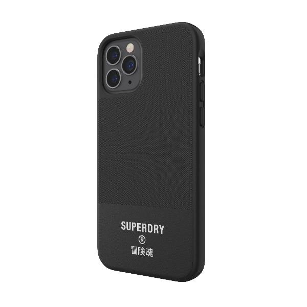 SUPERDRY - Cover in TPU+Policarbonato flessibile anti-urto con intarsiatura in tela colore nero compatibile con Apple iPhone 12 Pro/ iPhone 12