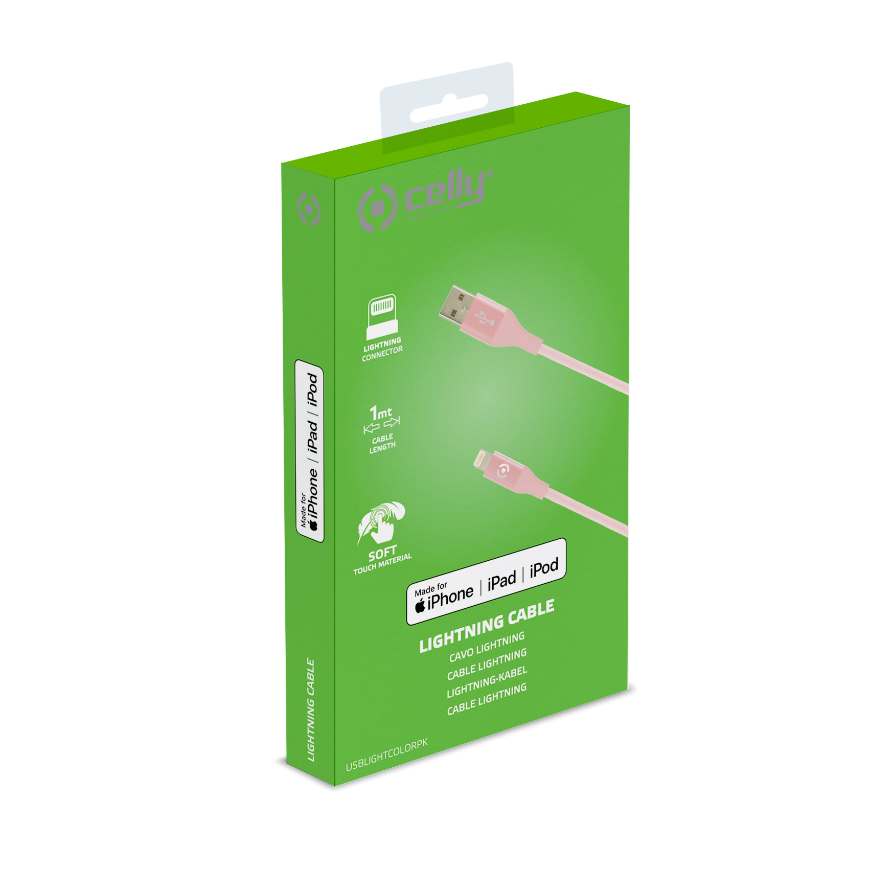 CELLY USBLIGHTCOLOR - Cavo USB-A a Lightning, lunghezza 1 metro, potenza massima 12 Watt, Certificazione "MFI"