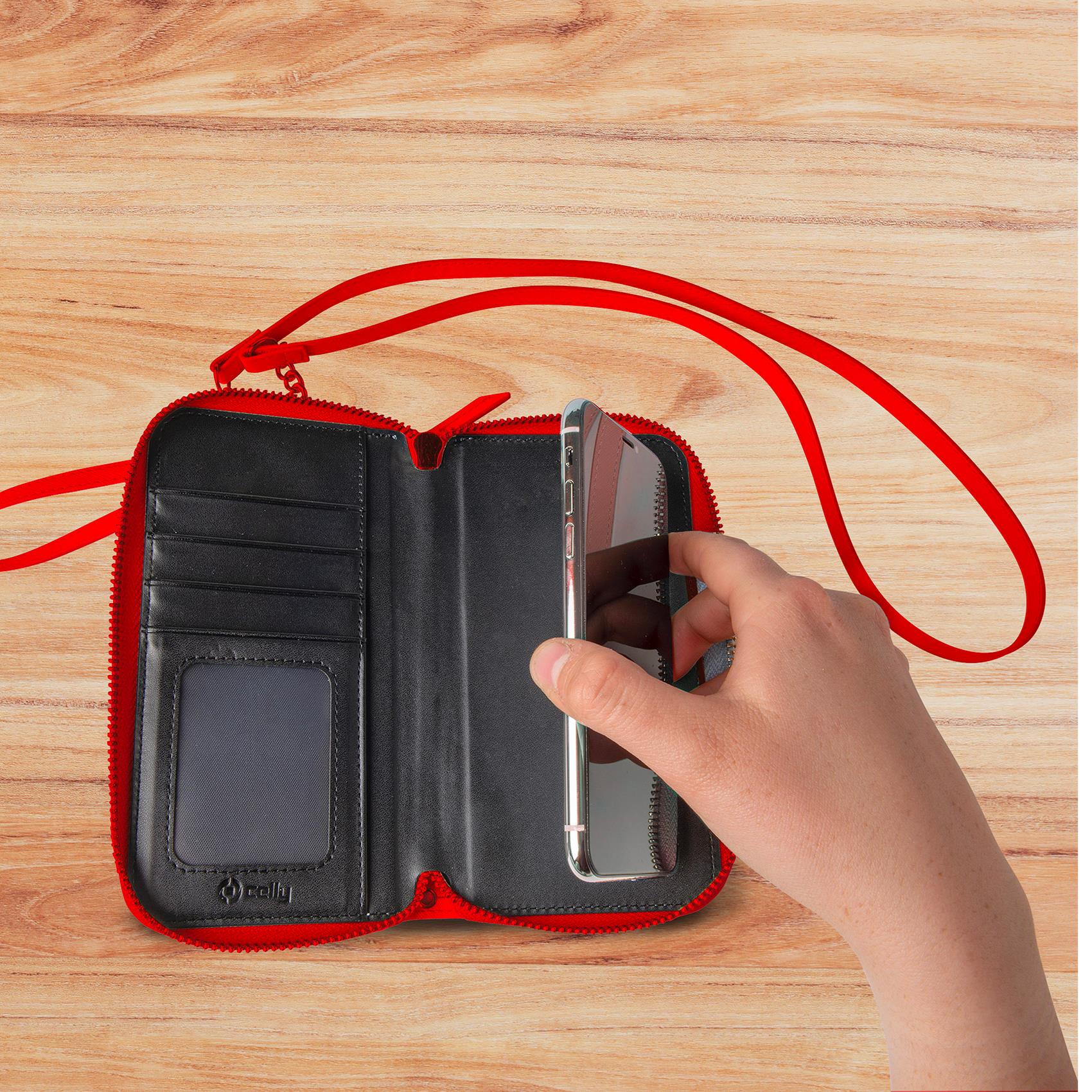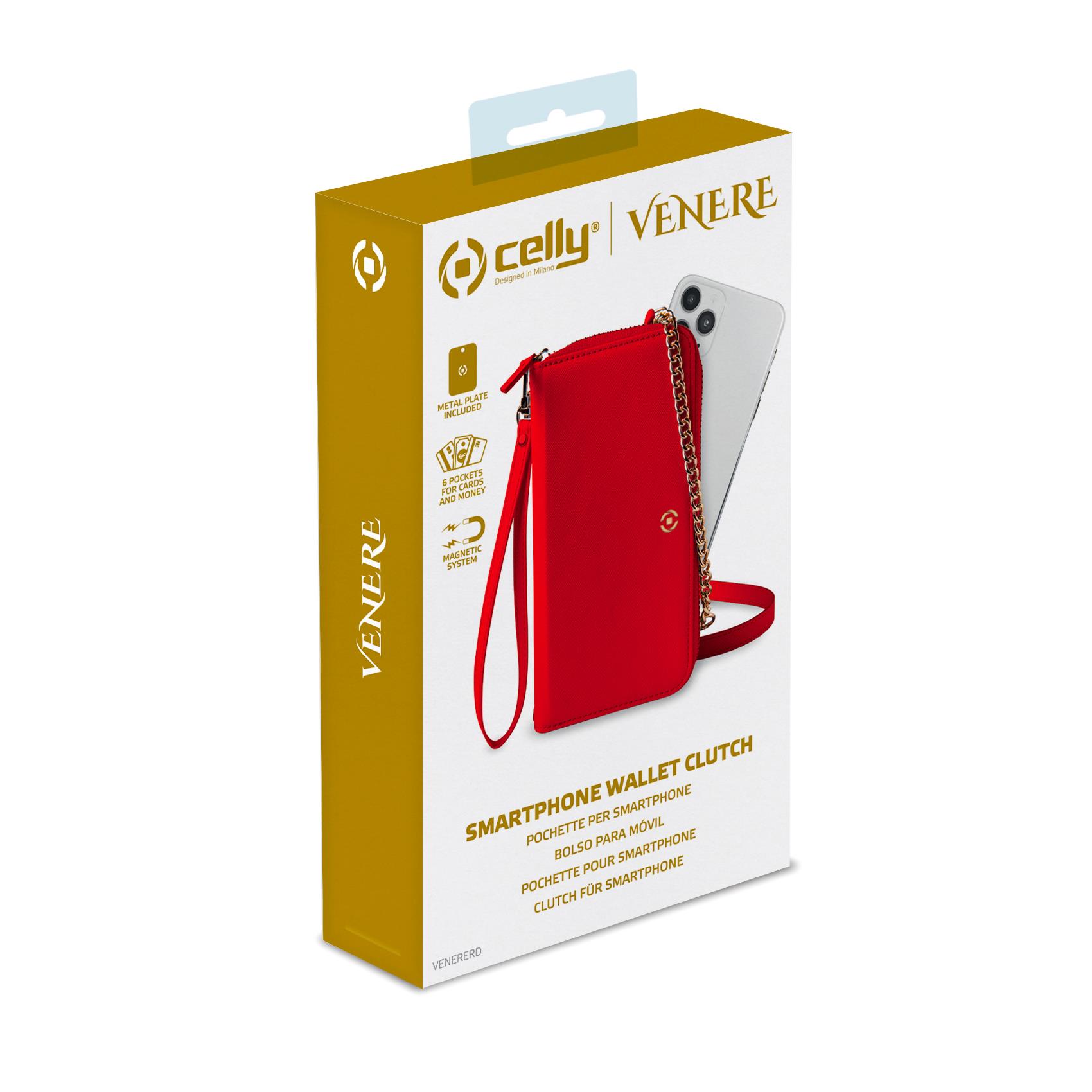 CELLY VENERE - Portafoglio universale con chiusura zip, laccio da polso e tracolla removibile inclusi, fissaggio smartphone magnetico compatibile con gli smartphone fino a 6.7"