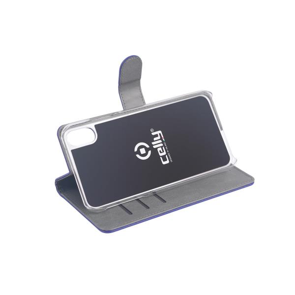 WALLY - Custodia a libro in pelle sintetica con chiusura flap magnetico, slot per carte e funzione stand colore blu compatibile con Apple iPhone Xr
