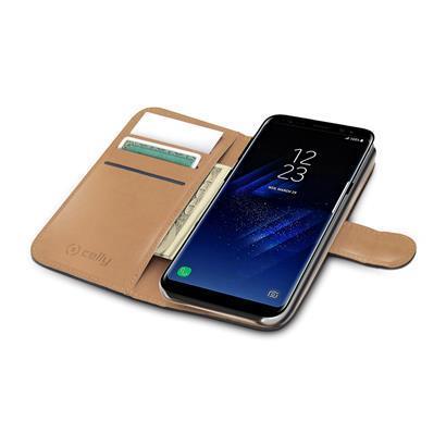 WALLY - Custodia a libro in pelle sintetica con chiusura flap magnetico, slot per carte e funzione stand colore nero compatibile con Samsung Galaxy S8+