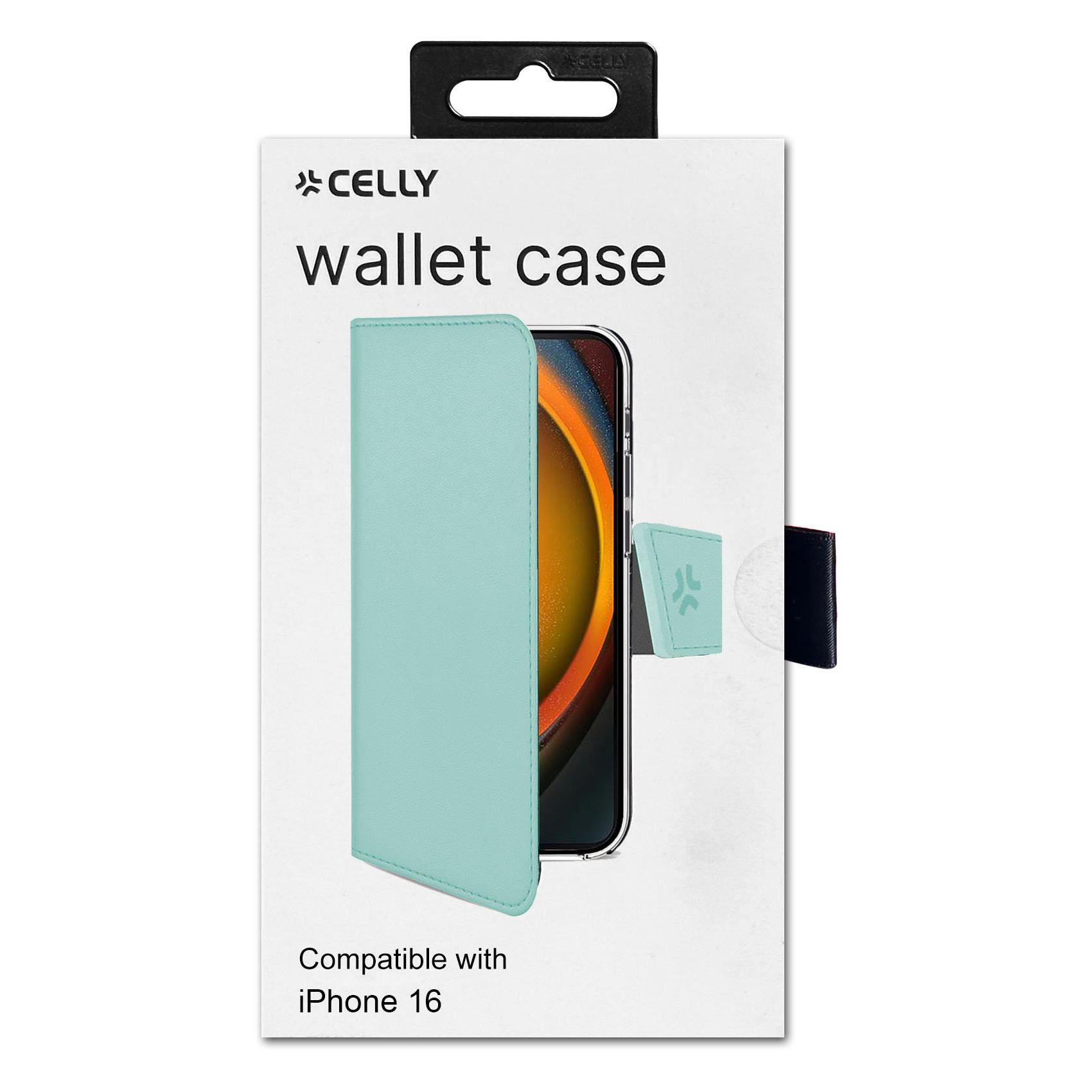 WALLY - Custodia a libro in pelle sintetica con chiusura flap magnetico, slot per carte e funzione stand colore verde compatibile con Apple iPhone 16 [IPHONE 16 CASES]