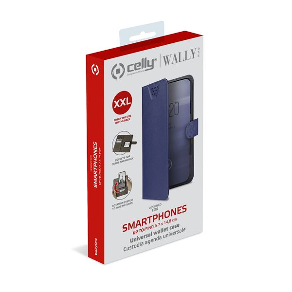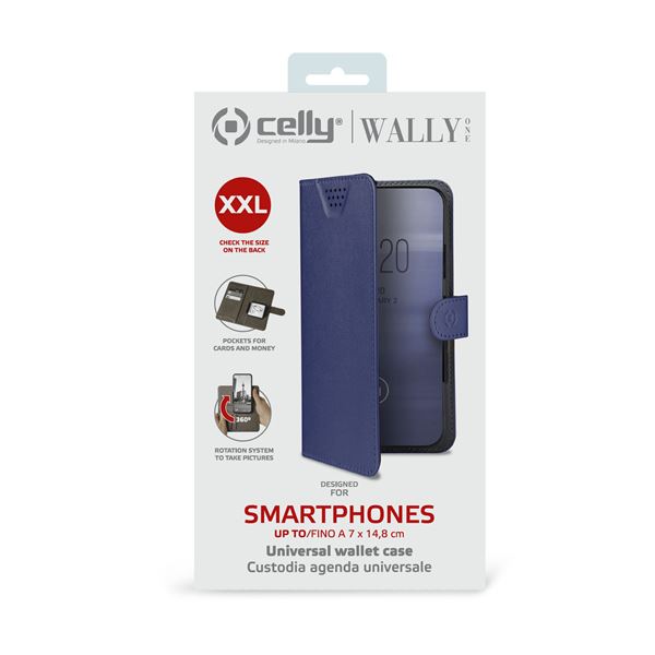 WALLY ONE - Custodia universale a libro colore nero con fissaggio e sistema rotazione 360° compatibile con tutti gli smartphone da 5" a 5.5" dimensione display