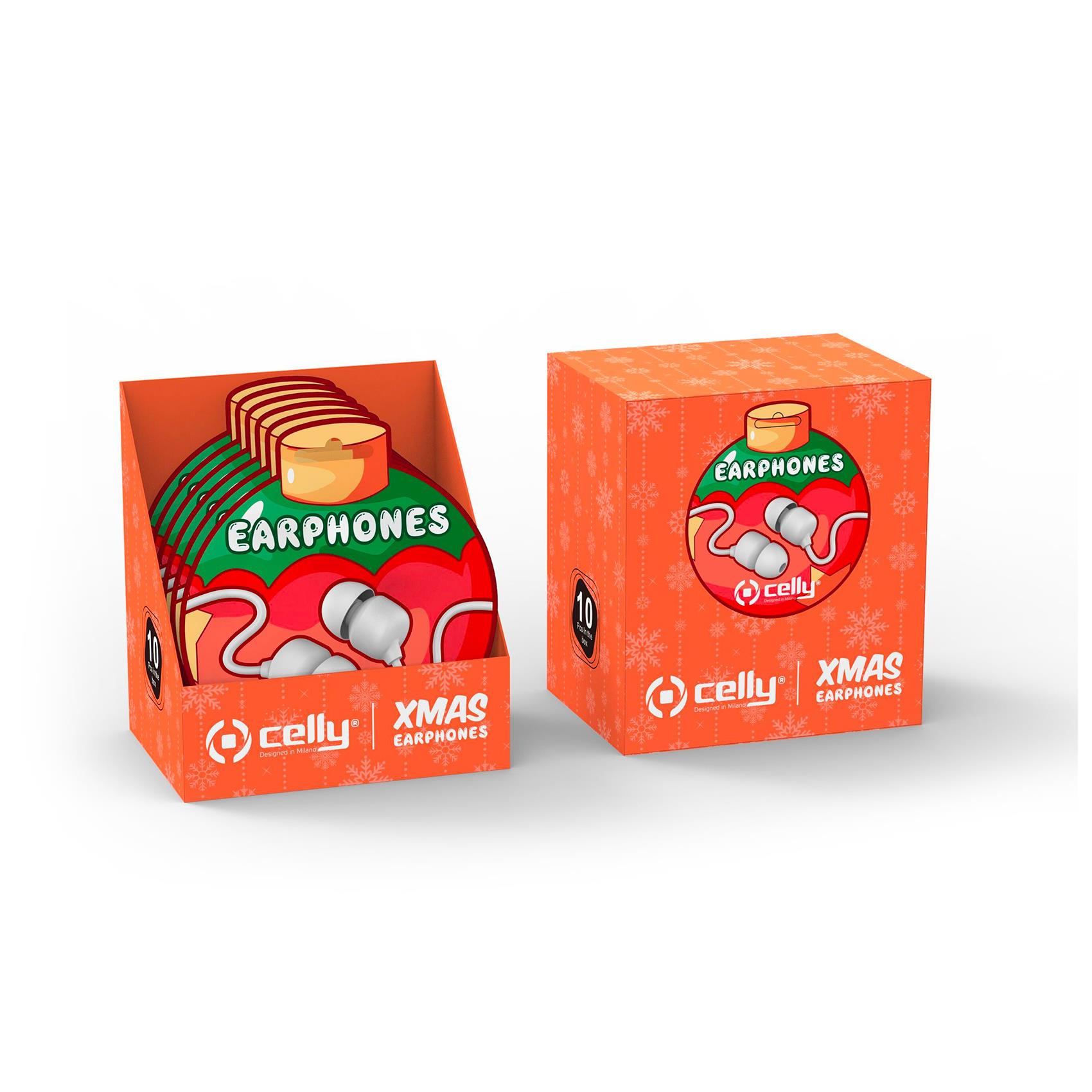 XMASEARBALL - Auricolare a filo stereo con jack 3,5 mm, cavo piatti anti groviglio, remote contro e microfono integrato, simpatica confezione Natalizia