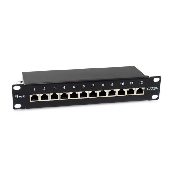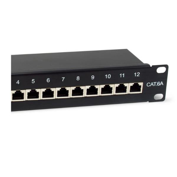 12-Port Cat.6A Shielded Patch Panel 10 1U Black