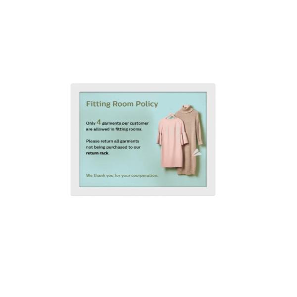 13 3 I-LINE FULL COLOR E-PAPER SIGNAGE DISPLAY ANDROID 11 SOC WIFI 24/7 LANDSCAPE/PORTRAIT EXTREMELY LOW POWER WHITE BEZEL