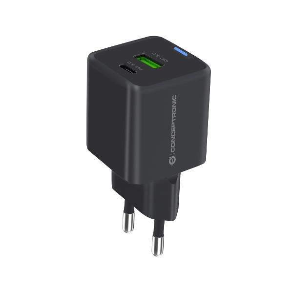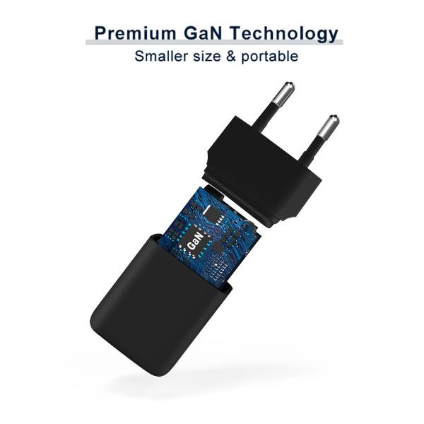 2-Port 20W GaN USB PD Charger USB-C x 1 USB-A x 1 QC 3.0 PPS Black