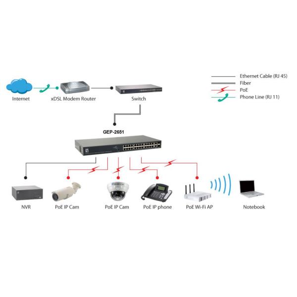 26-Port Web Smart Gigabit PoE Switch 2 x Gigabit SFP 24 PoE Outputs 370W